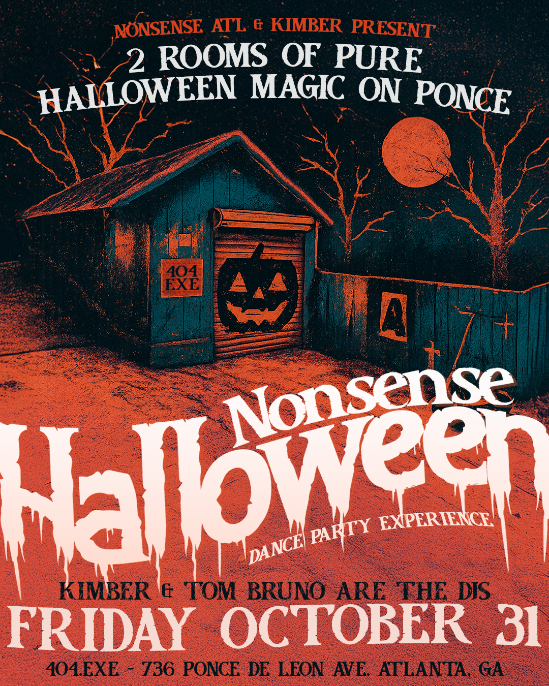 NonsenseATL presents The Nonsense Halloween Dance Party Experience. Two rooms of Halloween magic on Ponce — dancing, friends, weird activities, ridiculous prizes, creepy surprises & SO much fun. Let's go!