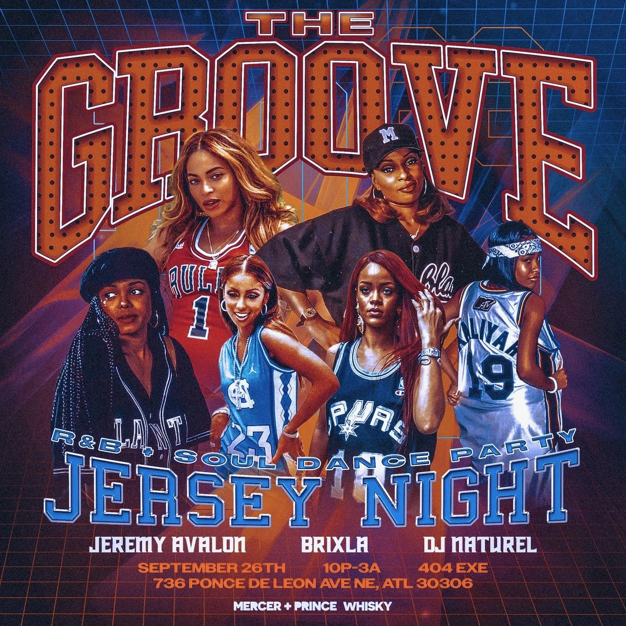 Atlanta's Top R&B + Soul Dance Party, going on 9 years strong! Come rocking your favorite throwback jersey. It's giving Mya in the baby blue North Carolina drip! Expect your favorite throwback jams and new school anthems from every era of R&B. We're talking Mary J, Jodeci, Janet, Anita, SZA, Summer, Victoria Monet, and everything in between! The Groove is full-on interactive experience from beginning to end with sing-alongs and non-stop dancing. Friday, September 26th at 404 EXE! 10p-3am Sets from Jeremy Avalon, Brixla, DJ Naturel